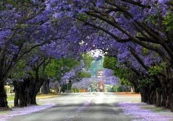 南非的蓝花楹路,从约翰内斯堡延伸到比勒陀利亚。约翰内斯堡是南非最大的城市,栽种了1000多万棵树,拥有世界上面积最大的人造森林。 地球上至少有49种蓝花楹种群,绝大多数原产自南美洲 尤其是乌拉圭、巴西、秘鲁和阿根廷 以及加勒比海盆地。100多年前,这种热带树木…